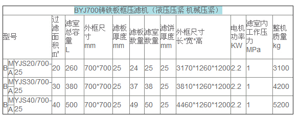 BYJ700鑄鐵板框壓濾機(液壓壓緊 機械壓緊) 單價:20000元整